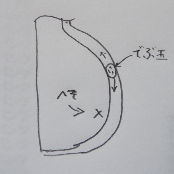 へその中を覗くと、、、、毛玉が入り込んでるのを発見。